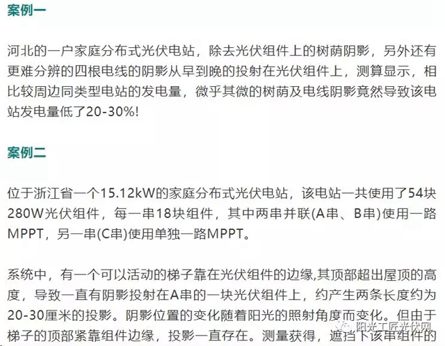 眾所周知,光伏電站中的陰影遮擋,其中包括電線桿、植物、鳥糞、灰塵以及組件的前后排遮擋等,那么光伏系統(tǒng)的發(fā)電量究竟會有多少變化,對于投資收益的影響又有多少呢? 在家庭戶用電站中,很多的業(yè)主為了安裝時的一次性到位,往往不能完全避開陰影,因為業(yè)主們覺得反正陰影遮擋的區(qū)域并不大,不會嚴重影響發(fā)電量。但實際上...