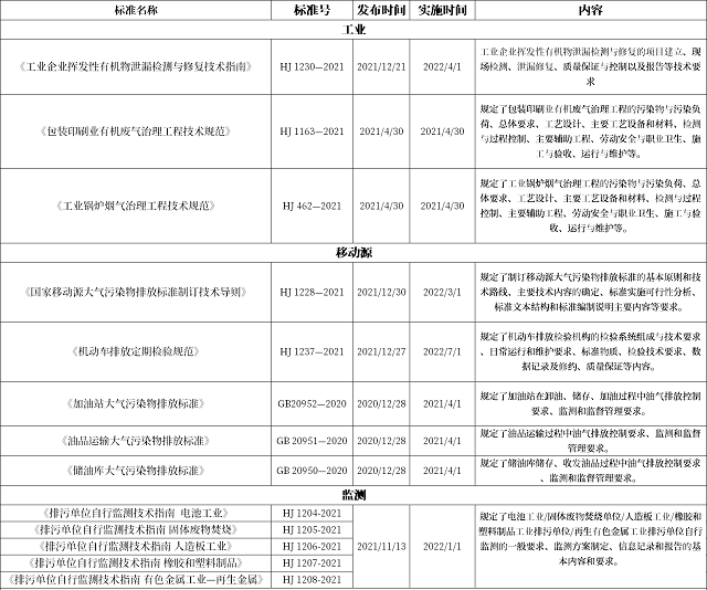 2022年4月1日,國家生態(tài)環(huán)境標準《工業(yè)企業(yè)揮發(fā)性有機物泄漏檢測與修復技術指南》將正式施行。 其實,自生態(tài)環(huán)境保護工作步入第十四個五年規(guī)劃以來,作為深入打好污染防治攻堅戰(zhàn)的重要環(huán)節(jié),大氣污染防治相關標準就一直在陸續(xù)更新中,涉及工業(yè)、移動源、監(jiān)測等多個領域,粗略整理如下: 《工業(yè)企業(yè)揮發(fā)性有機物泄漏...