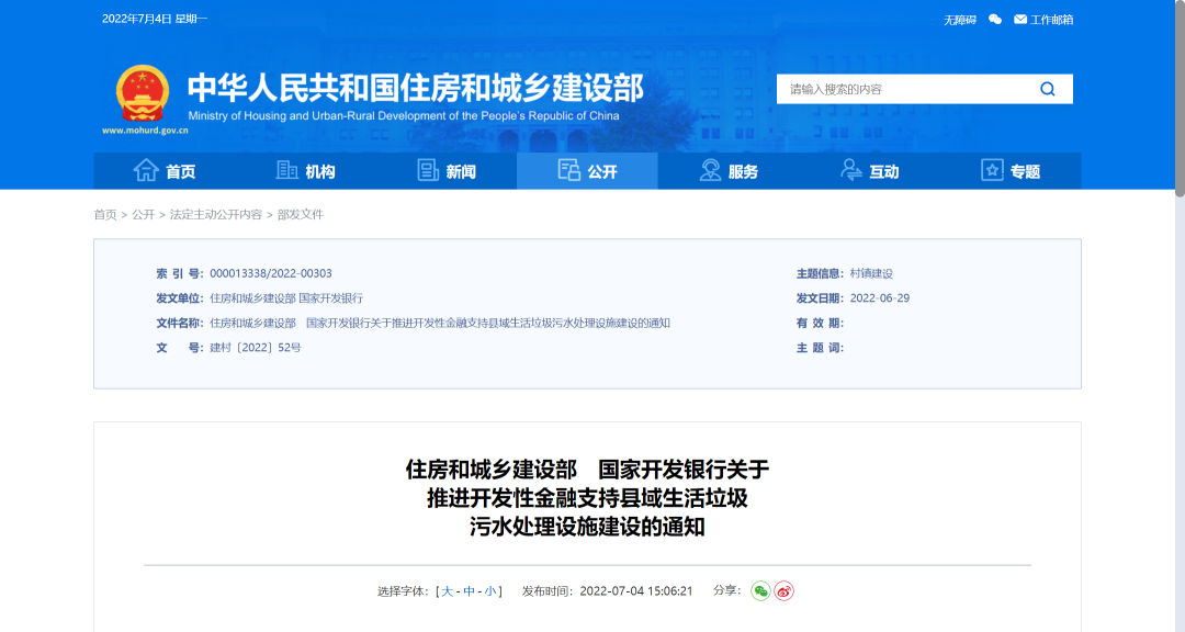 關注 | 住建部 國開行印發(fā)通知:對縣域垃圾污水處理設施建設提供開發(fā)性金融支持