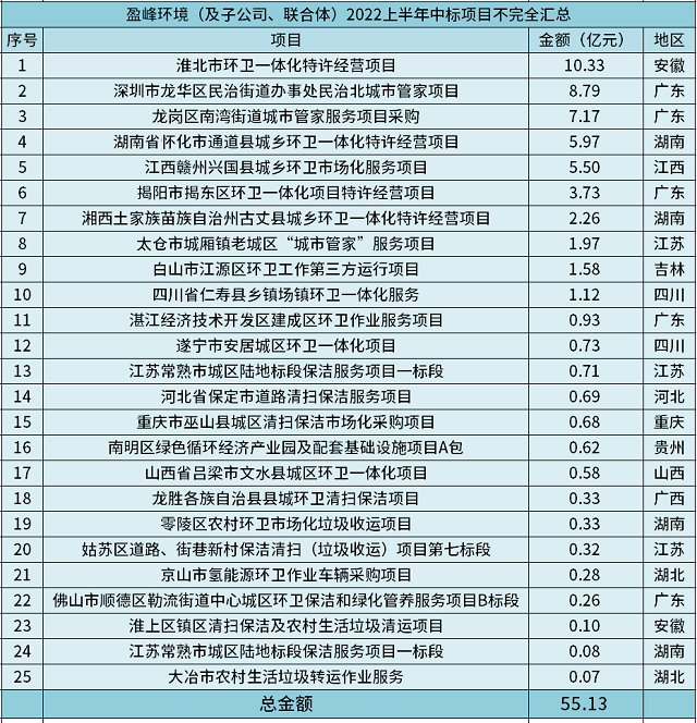 總55.13億!盈峰環(huán)境化身億級(jí)項(xiàng)目“收割機(jī)”,2022上半年火力全開!