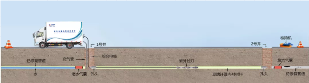 紫外線光原位固化內(nèi)襯非開挖修復技術(shù)是將玻璃纖維編制成軟管浸漬光固化樹脂,然后將其拉入原有管道內(nèi)充氣擴張緊貼原有管道,以原有管道為外模,軟管內(nèi)膜為內(nèi)模,然后紫外光的作用下使樹脂固化形成具有一定強度的復合內(nèi)襯管的原位固化法。待管道清理完畢,且管道破裂塌陷預(yù)處理完后,采用紫外光固化內(nèi)襯修復技術(shù)進行修復。 ...