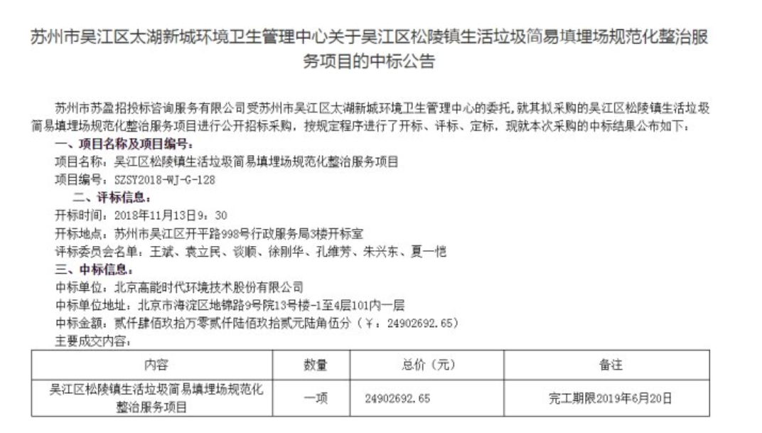 本小贏家剛剛從蘇州市公共資源交易中心網(wǎng)獲悉,北京高能時(shí)代環(huán)境技術(shù)股份有限公司中標(biāo)吳江區(qū)松陵鎮(zhèn)生活垃圾簡易填埋場規(guī)范化整治服務(wù)項(xiàng)目,合同2490萬元。 另外本小贏家從湖北政府購買服務(wù)信息平臺(tái)獲悉,北京高能時(shí)代環(huán)境技術(shù)股份有限公司中標(biāo)荊門市中心城區(qū)生活垃圾焚燒處置項(xiàng)目。本項(xiàng)目建設(shè)地點(diǎn)位于荊門市高新區(qū)·掇...