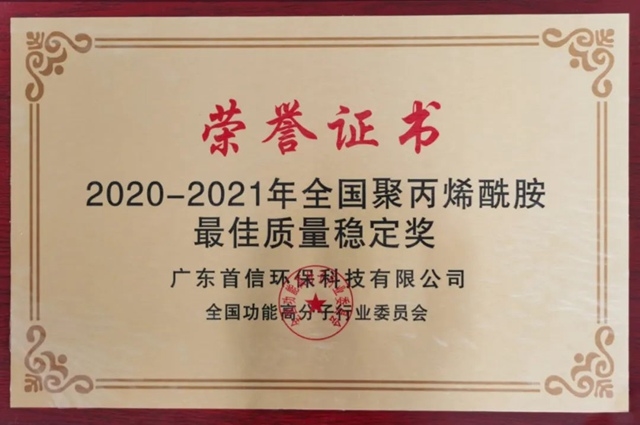 2020-2021年全國(guó)聚丙烯酰胺最佳質(zhì)量穩(wěn)定獎(jiǎng)已出爐,本次獲得該項(xiàng)榮譽(yù)的是——廣東首信環(huán)保材料科技有限公司??上?、可賀、更可嘆!首信環(huán)保獲全國(guó)聚丙烯酰胺最佳質(zhì)量穩(wěn)定獎(jiǎng) 事實(shí)上,廣東首信環(huán)保材料科技有限公司(下稱“首信環(huán)保”)已經(jīng)不是第一次獲得該項(xiàng)榮譽(yù)...
