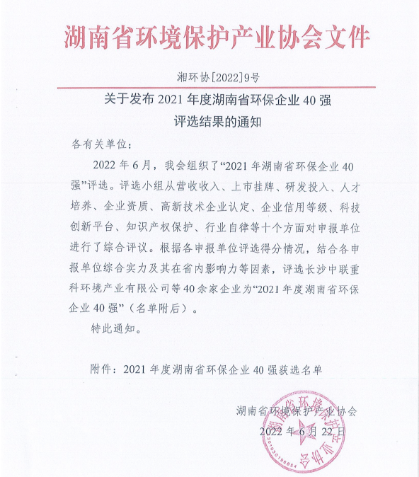 2022年6月24日,中鐵環(huán)境被湖南省環(huán)境保護(hù)產(chǎn)業(yè)協(xié)會(huì)評(píng)選為2021年度湖南省環(huán)保企業(yè)40強(qiáng)。 中鐵環(huán)境自2018年成立以來(lái),主營(yíng)業(yè)務(wù)持續(xù)聚焦污水處理、固廢處置領(lǐng)域,并大力發(fā)展生態(tài)修復(fù)、綠色建造等領(lǐng)域業(yè)務(wù),突出環(huán)保裝備和材料的創(chuàng)新研發(fā),采用“裝備+服務(wù)”管家新模式,為客服提供...